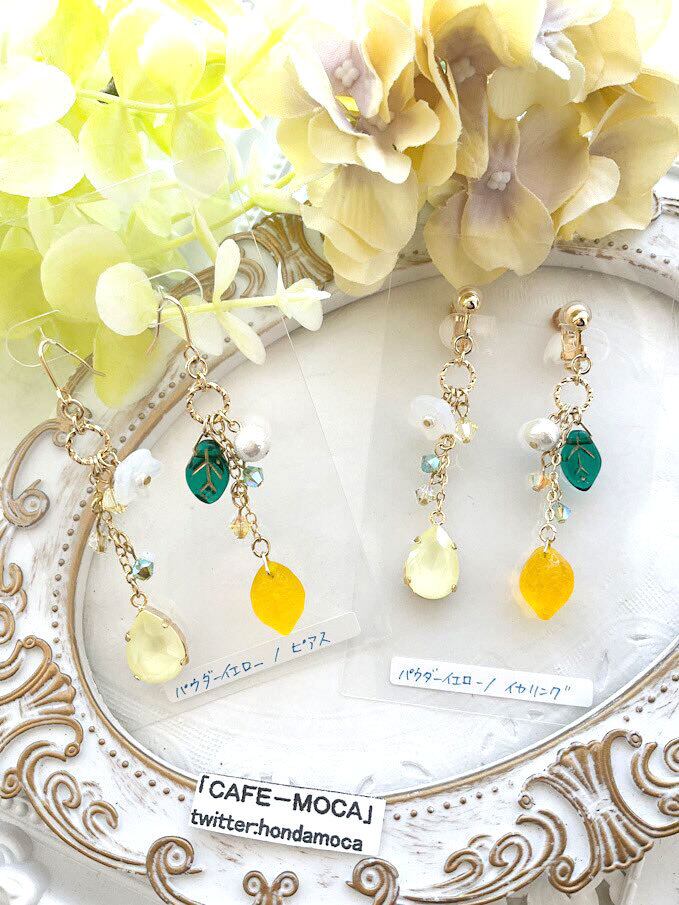 檸檬はチェコビーズ、廃盤のパウダーイエローのスワロフスキーをメインにした